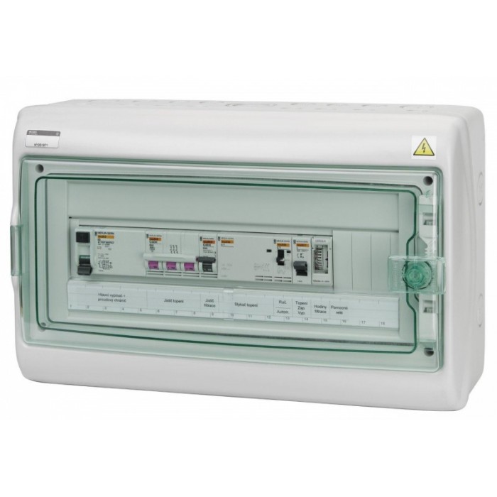 Автоматическое управление фильтром - включает токовый предохранитель 3f/30 мА, переключатель - автоматический или ручной режим работы фильтрации, таймер, защита фильтрации, защита подсветки бассейна, электровыключатель. Подогрев, электрическая защита обогрева.
