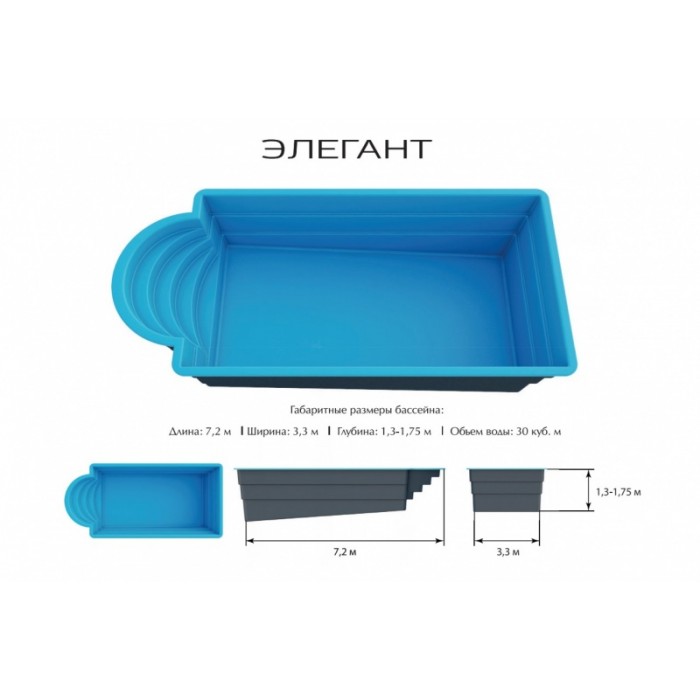 Композитный бассейн Элегант Ecoline 7,2x3,2x1,7
