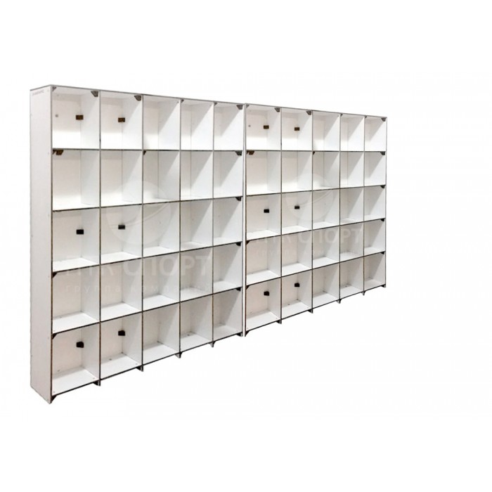 Шкаф-полка для душевой очень отличается от других изделий раздела с полками. Она сделана из 8 мм HPL пластика, поэтому идеально подходит для душевой или можно повесить в помещении с бассейном. 56 небольших полочек, в которые могут помещаться небольшие предметы, например, ванные принадлежности в душевых при бассейне, а также многое другое. Глубина шкафа 150 мм.