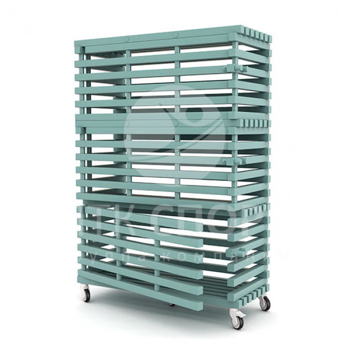Шкаф-стеллаж 3-секционный закрывающийся производства ГК «ПТК Спорт» отлично впишется в интерьер вашей раздевалки, подсобных помещений или в качестве мебели для хранения инвентаря в бассейне.