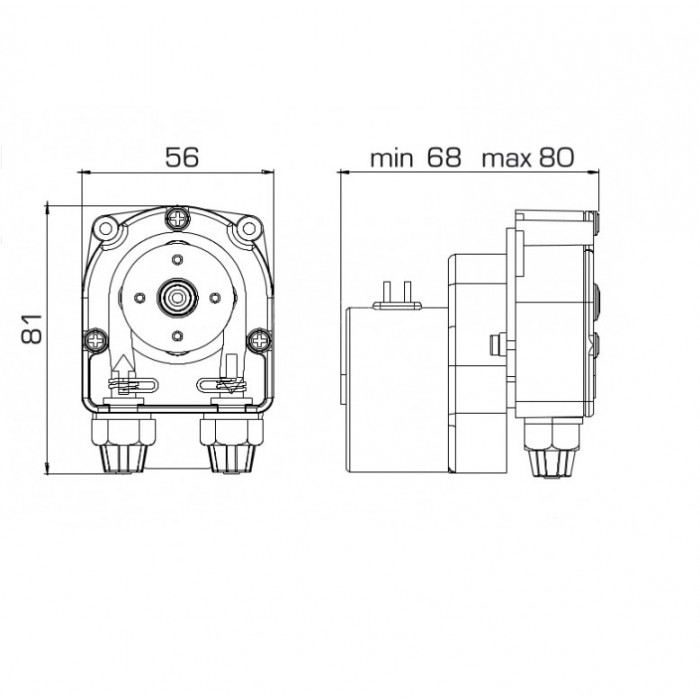 Корпус насоса выполнен из кислотостойкого пластика – полипропилена, рабочие роллеры и шланг защищены крышкой из прозрачного поликарбоната, которая закреплена на передней части насоса тремя винтами.