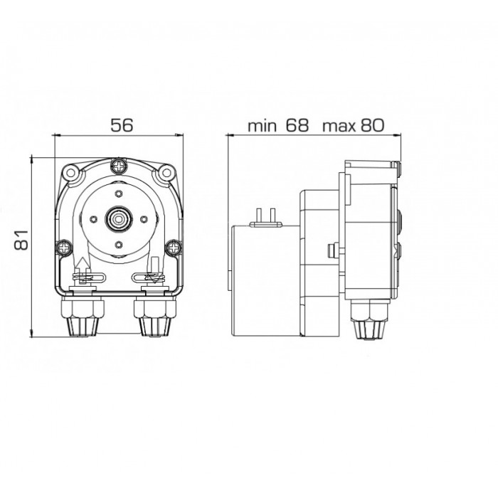 Корпус насоса выполнен из кислотостойкого пластика – полипропилена, рабочие роллеры и шланг защищены крышкой из прозрачного поликарбоната, которая закреплена на передней части насоса тремя винтами.