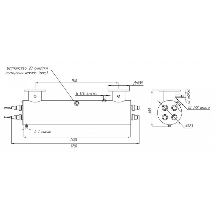 - габариты камеры обеззараживания: D323 х 1426 мм;