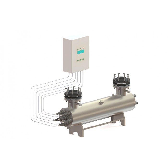 По индивидуальному заказу покупателя корпусные элементы установки могут быть изготовлены из более стойкой к коррозии нержавеющей стали марки AISI-316. При подборе установок УФ очистки воды следует учитывать, что производительность одной и той же установки зависит от требуемой дозы облучения (в мДж/см2), а также от коэффициента пропускания ультрафиолета водной средой.