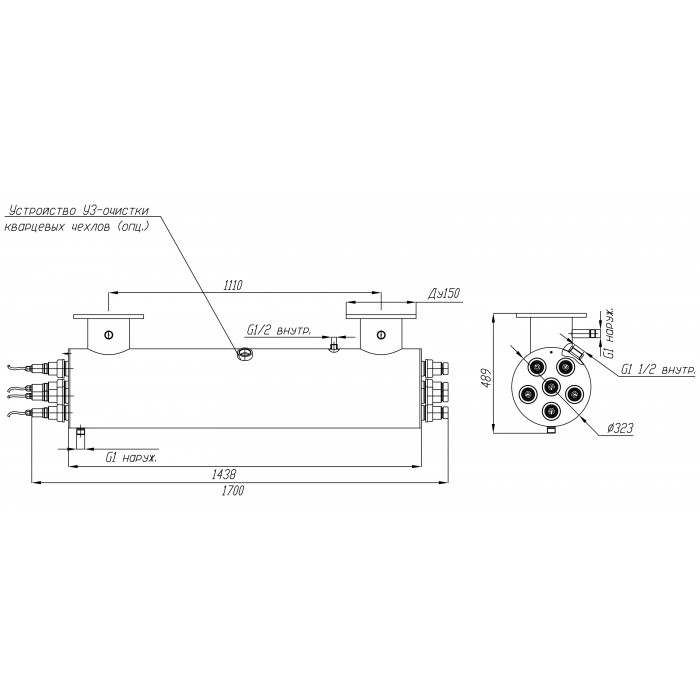 - габариты камеры обеззараживания: d323х1438 мм;