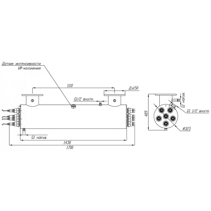 УФ-обеззараживатель УФУ-250 с блоком промывки и датчиком УФ, 1800 W