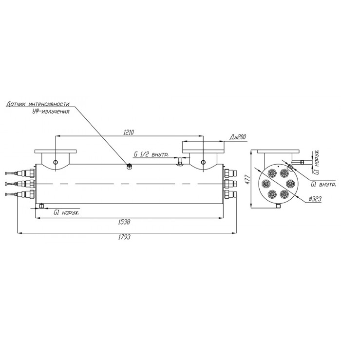 - габариты камеры обеззараживания: d323х1538 мм;