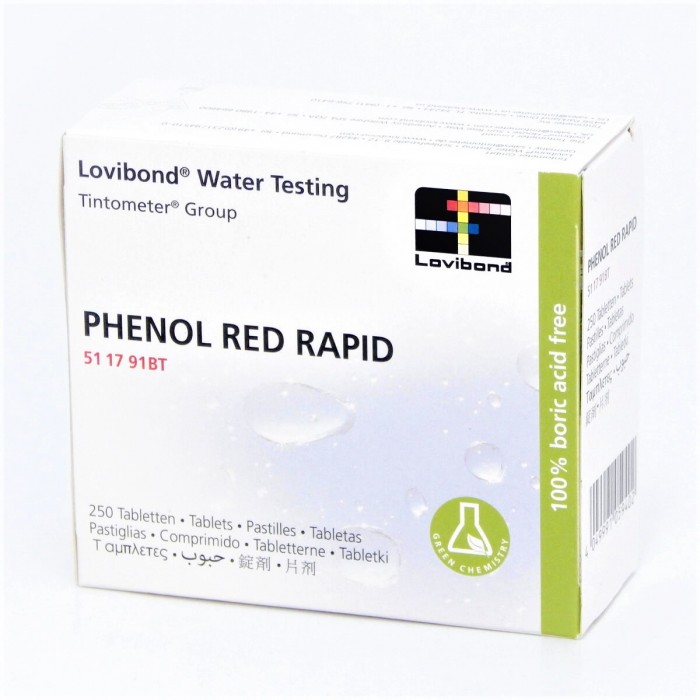 Phenol Red используется для измерения pH. Таблетка производит характерные изменения цвета при растворении в пробе воды. Значение pH важно для дезинфицирующего действия средств по уходу за водой. Это также может вызвать коррозию или осаждение и тем самым повредить материалы. Таблетка быстрого растворения была разработана для использования в тестерах. В упаковке 250шт