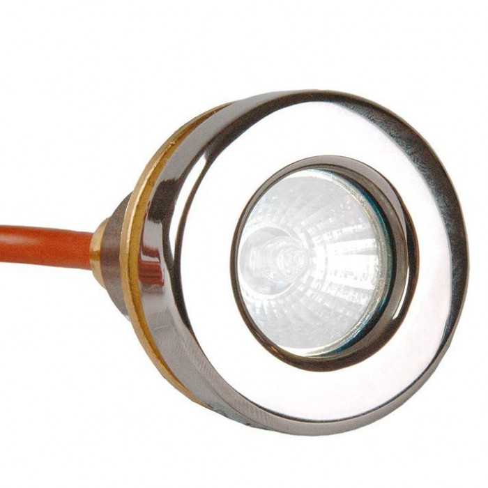 Прожектор галогенный MINI 20 Вт, 12В AC, круг 57 мм, накл. с контрагайкой 1", NiSn, 2 м 2x1,5 мм2, BZ для соленой воды (сборный)
