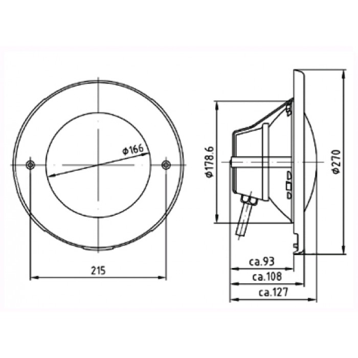 Подводный галогенный прожектор Hugo Lahme Vitalight PAR56 300 Вт, 12В AC, круг 270 мм, V4A, 2,5 м кабель 2x6 мм2, RG для подводного освещения плавательных бассейнов.