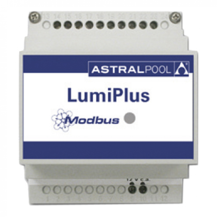 Устройство "LumiPlus Modbus" предназначенное для дистанционного управления прожекторами LumiPlus посредством компьютера через протокол Modbus. Напряжение 12 В.