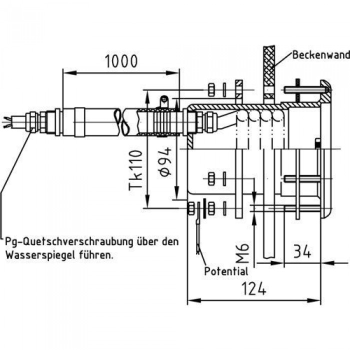 Закладная ниша прожекторов VitaLight (Hugo Lahme) 140 мм для сборных бассейнов, с шлангом для кабеля и контрафланцем,