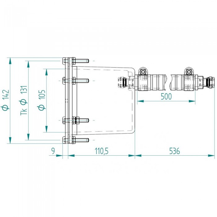 Закладная деталь прожектора 155 мм, со шлангом для кабеля и контрафланцем, BZ для соленой воды (сборный)
