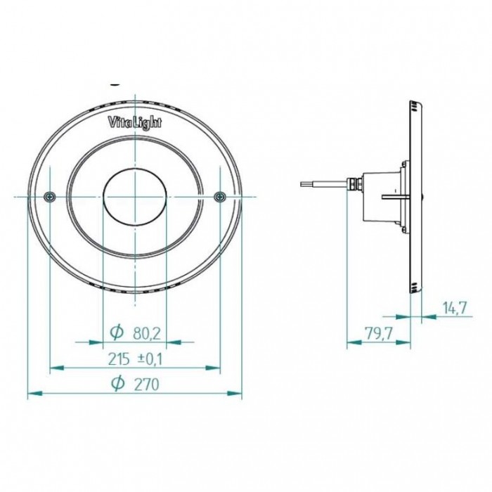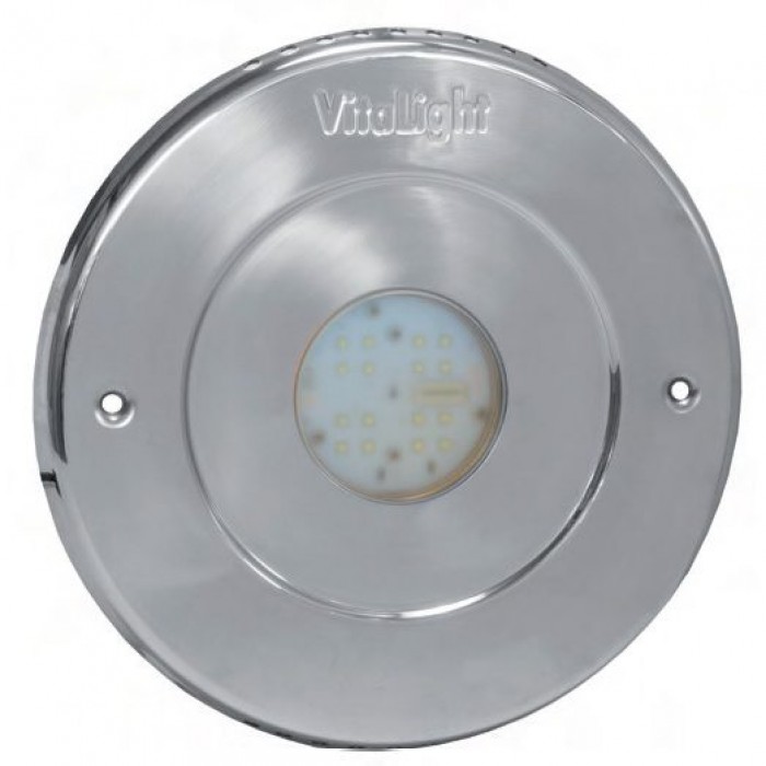Светодиодный прожектор VitaLight (Hugo Lahme) 16/4 Power LED 3.0, 43 Вт, 24В DC, круг 270 мм, V4A, монох. 3000K, 5 м каб. 2x1,5 мм2, BZ - используется для освещения бассейнов. Может быть установлен в следующие типы бассейнов с соленой водой: