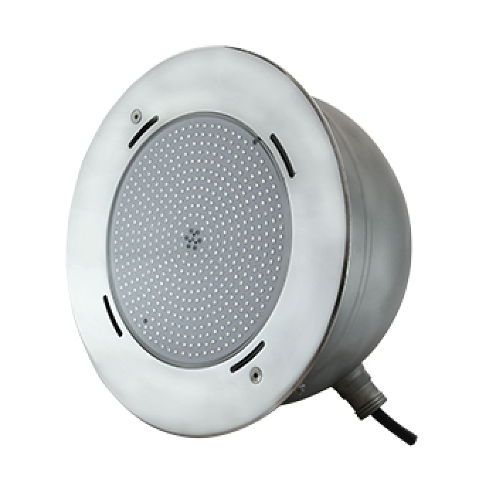 Корпус прожектора выполнен из полированной нержавеющей стали. Мощность 40Вт. Для подключения используется постоянный ток 12В