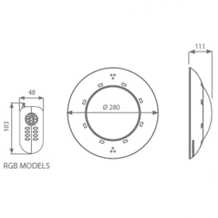 Подводные светодиодные светильники Flat повышают энергоэффективность по сравнению с традиционной галогенными мощностью 300 Вт. Светильник должен всегда быть полностью погружен в воду. Срок службы 25000 ч. Светильник должен быть подключен к трансформатору, обеспечивающему напряжение 12 В переменного тока.