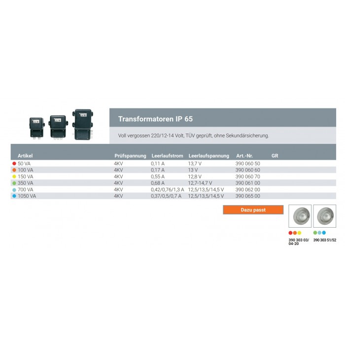 Цельнолитые трансформаторы Behncke имеют превосходную степень защиты корпуса IP65, при этом вторичный предохранитель отсутствует. Трансформатор Behncke 350 Вт, 0,68 А, 12,7-14,7 В для подводных светильников Behncke.