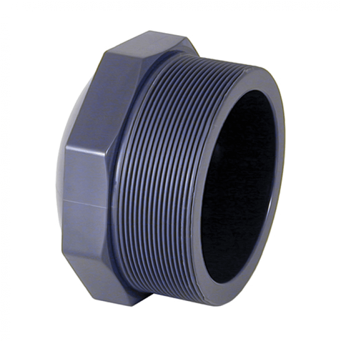Заглушка (наружное резьбовое соединение) - приспособление для закрывания отверстия наглухо. Изготавливается из непластифицированного поливинилхлорида (нПВХ). Материал обладает высокой плотностью, жесткостью и механической прочностью. Экологически безопасен, не имеет вредного воздействия на человеческий организм и окружающую среду. Соединение труб и фитингов нПВХ производится с помощью резьбы.