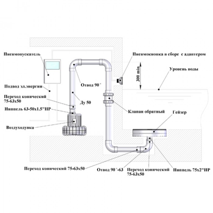 компрессора низкого давления , генерирующего пузырьки воздуха;