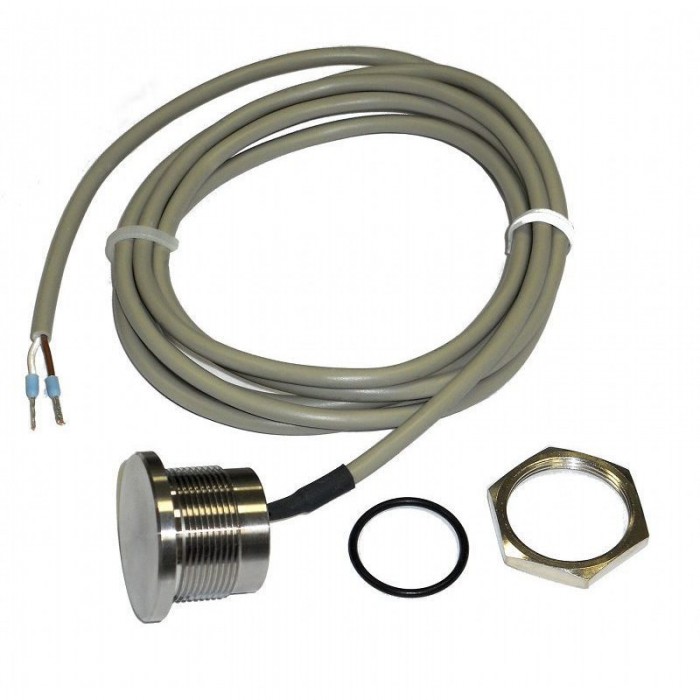 Данная кнопка полностью водонепроницаема (класс IP68) и может быть также установлена ниже уровня воды бассейна. Корпус кнопки выполнен из нержавеющей стали, длина 6-ти жильного кабеля составляет 1.5 м. Контргайка для крепления входит в комплект. Габариты шляпки кнопки: диаметр 28мм, высота 3мм.