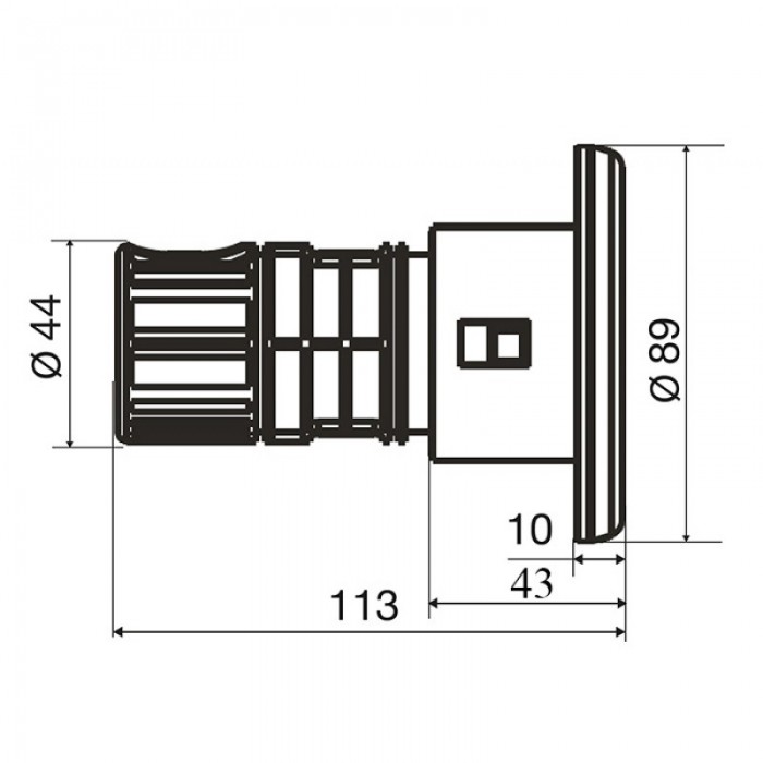 - подсоединение: 44 мм;