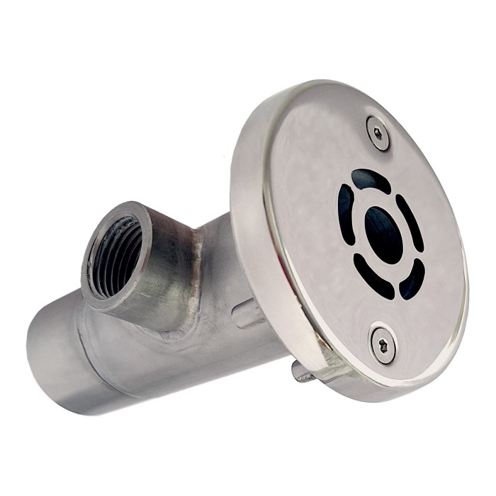 Форсунка гидромассажа производительностью 5-7 м³/ч (арт. ФГ.05) имеет закладную с резьбовым подсоединением 1 дюйм, поставляется в комплекте с эжектором и лицевой панелью.
