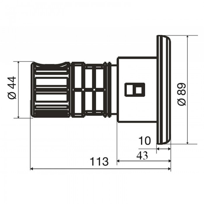 - подсоединение: 44 мм;
