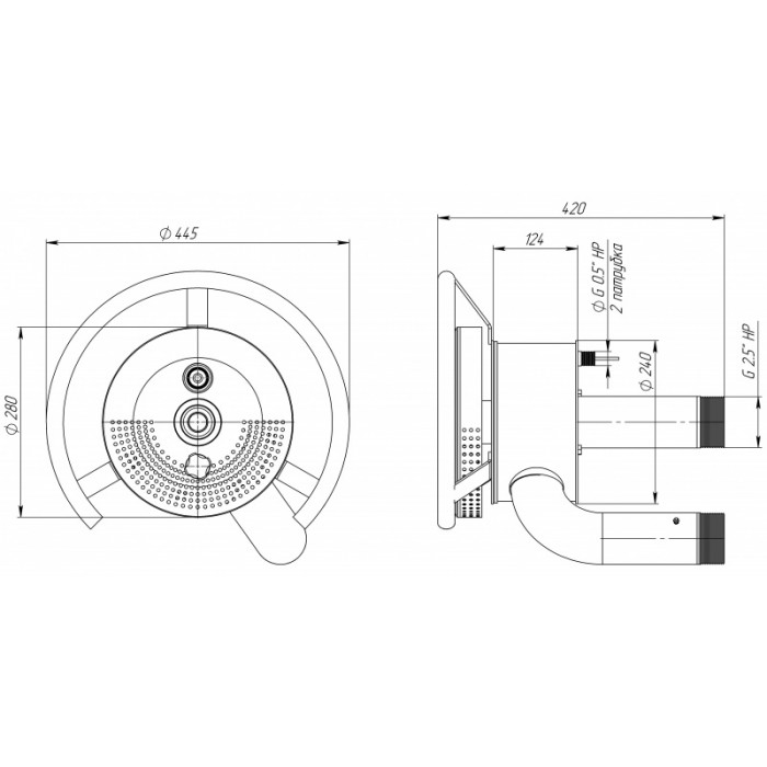 Лицевая панель противотока АС 54 м3/ч с сенс. кнопкой с регулятором воздуха AISI 316L