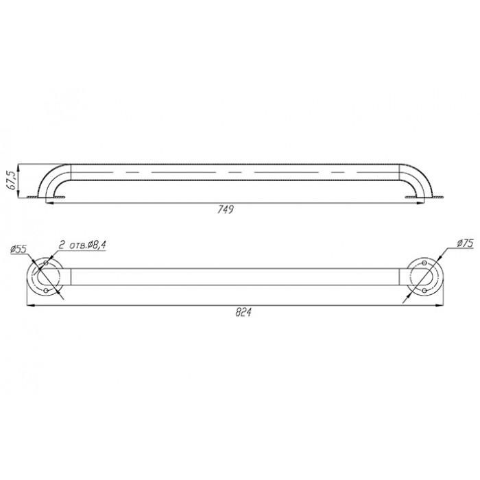 - габаритные размеры: высота 67,5 мм, длина 824 мм;