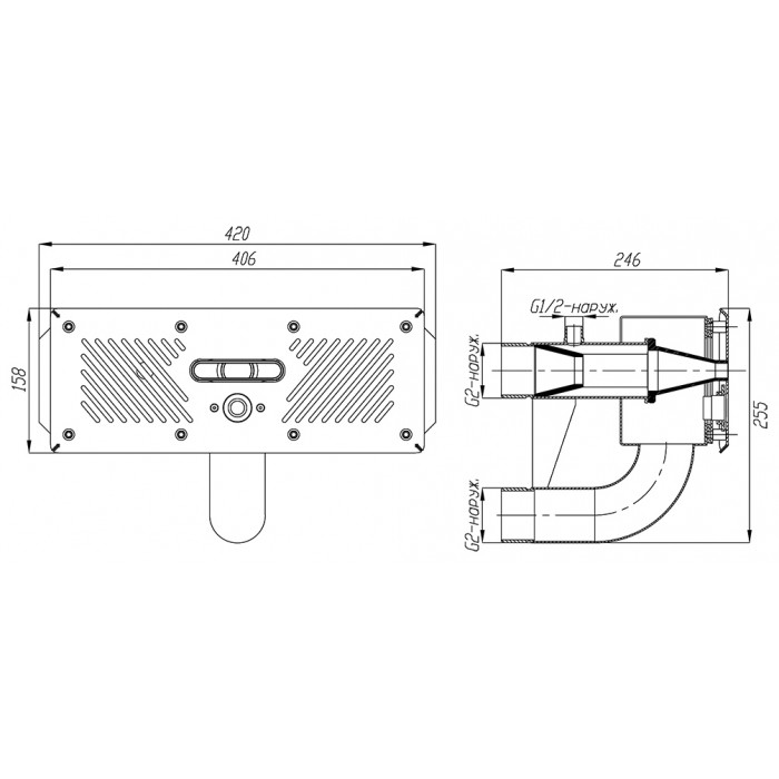 - габаритные размеры: лицевая панель ‒ 405х157 мм, общие ‒ 405х254х246 мм;