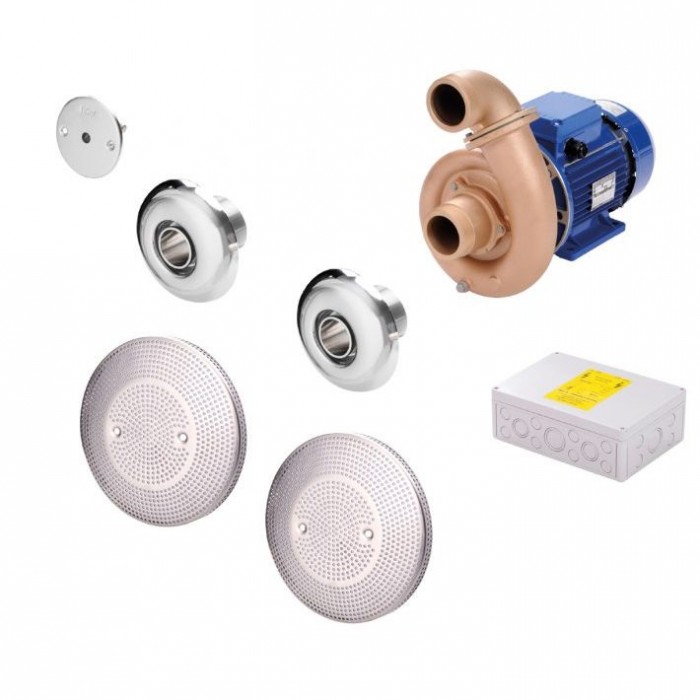 В комплект противотока входит насос 2,6 кВт, два водозабора из нержавеющей стали, две подающие форсунки из нержавющей стали, пьезокнопка. Подходит для бассейнов с соленой водой. Мощность струи: 1050 л/мин (63 м3/ч). Потребляемая мощность противотока 3,4 кВт, выходная мощность 2,6 кВт. Противоток Fitstar Double-Jet от Hugo Lahme является устройством искусственного течения. Насос создает поток воды, что позволяет получить иллюзию течения, таким образом, даже небольшой бассейн начинает казаться бесконечно длинным. С помощью специальных насадок и гибких шлангов противоток можно использовать как массажное устройство. Данный противоток является встраиваемым и его наличие в бассейне должно быть предусмотрено на этапе проектирования.