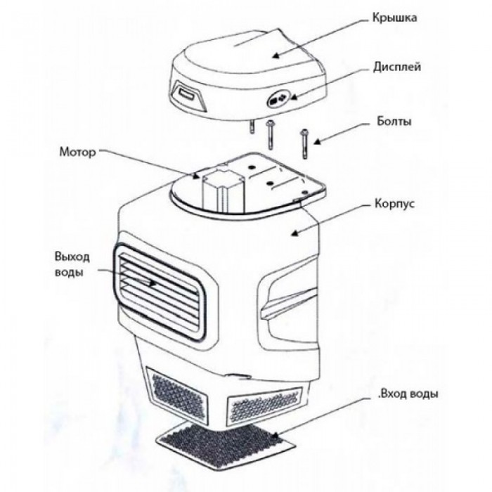 - мощная турбина создает ламинарный поток, имитирующий речное течение;