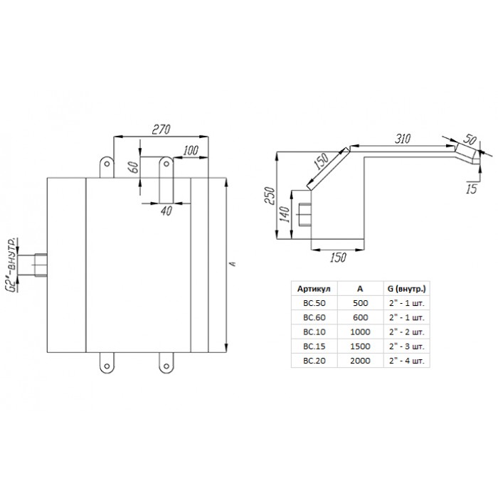 - Подсоединение: 2’’х 2 ВР;