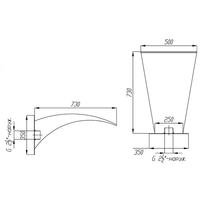 - Ширина излива: 500 мм;