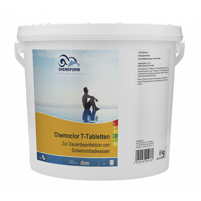 Хлорные таблетки для длительной дезинфекции воды в бассейне. Приготовлено с использованием более чем 90% активного хлора.