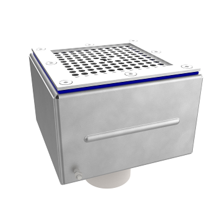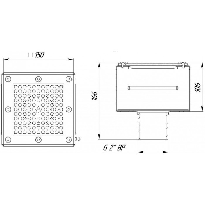 Донный слив 2" 150х150 с нижн. подключением, пленка (AISI 316), АС