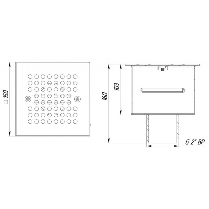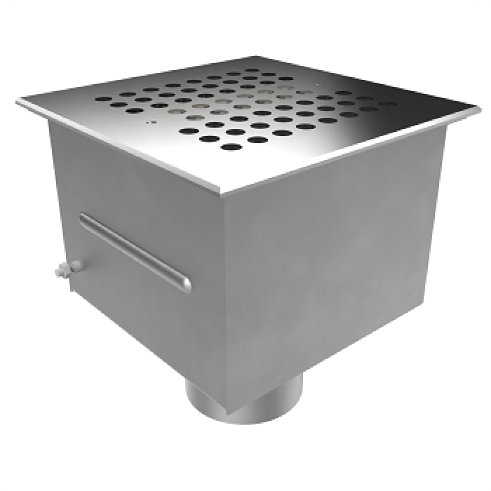 Донный слив 2" 150х150 с нижн. подключением, плитка (AISI 316), АС