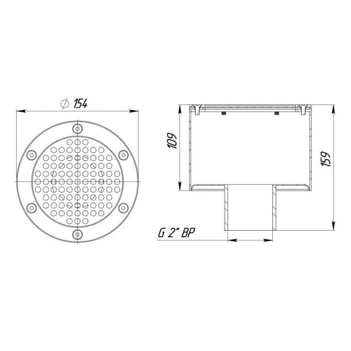 Донный слив 2" D154 с нижн. подключением, пленка (AISI 316), АС