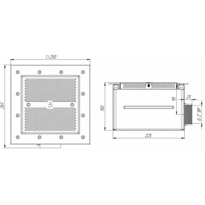 Донный слив 2" ВР, 250х250, АС