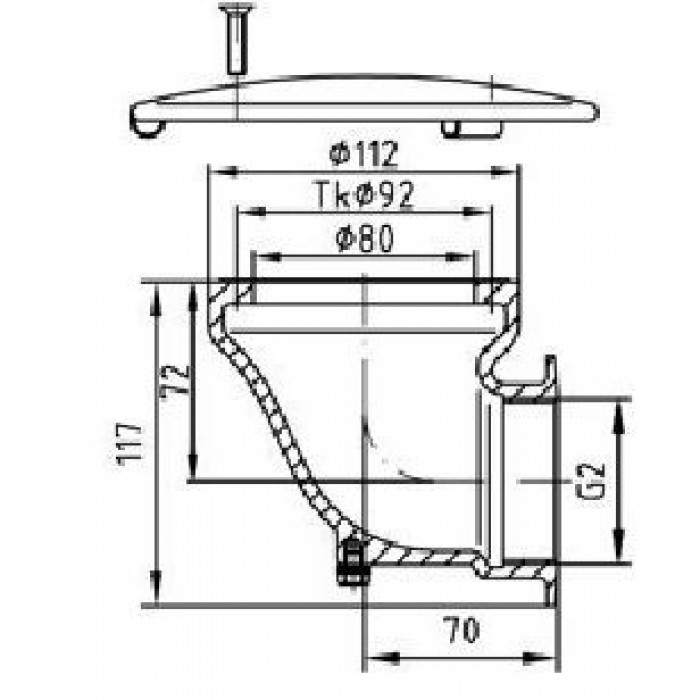 Донный слив 2" ВРс боковым выходом 90° и антивихревой крышкой d 168 мм (пленка)